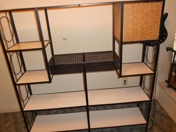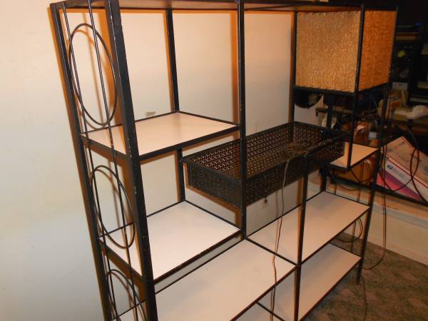 Original Vintage 1950s Frederick Weinberg MCM Iron & Formica Lighted Room Divider Shelves