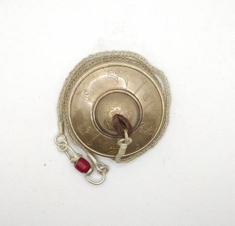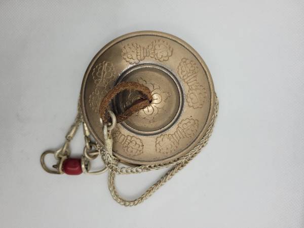Master quality Tibetan cymbal or also known as Tingsha in Tibetan. Very nice sound with smooth finishing. Carved Vajra (Dorjee) and om mane padme hung script on it. You can choose the design you want. It has nice hand made white metal chain which was used in antique pieces. Comes with nice cover. Best Tibetan cymbal in the market.