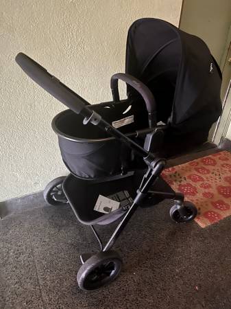 The set is a modular system where you have a bassinet that can fold into a stroller seat, and it clips onto the wheels, and the car seat clips on to the wheels as well. Great budget system. The bassinet is really nice and roomy. Also comes with car seat base.