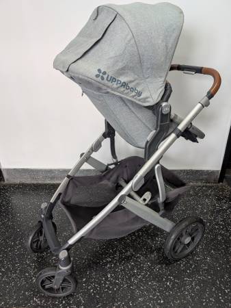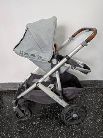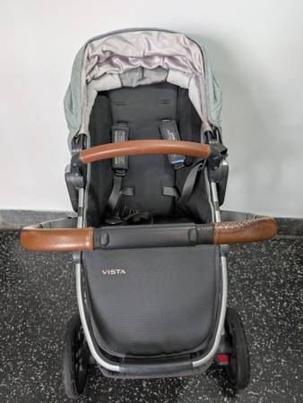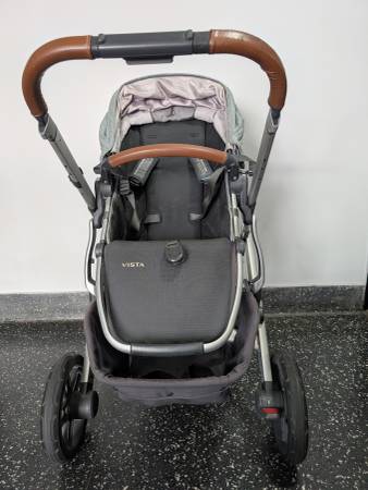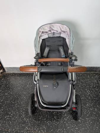 Uppababy Vista grey stroller in very good condition. Includes upper and lower adapters and rain protector. Pick up in Queens, cash only.