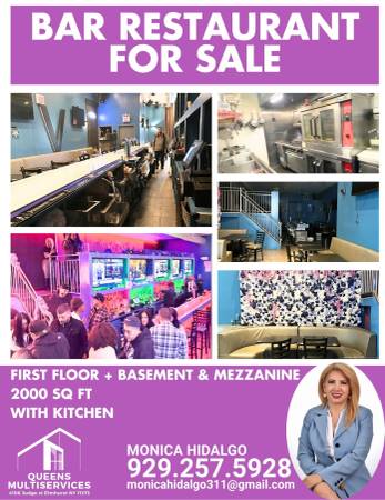 BAR & GRILL RESTAURANT FOR SALE BROOKLYN FIRST FLOOR + BASEMENT & MEZZANINE 2000 SQ FT WITH KITCHEN LEASE 8 YEARS FOR MORE INFORMATION PLEASE CALL ---- -----