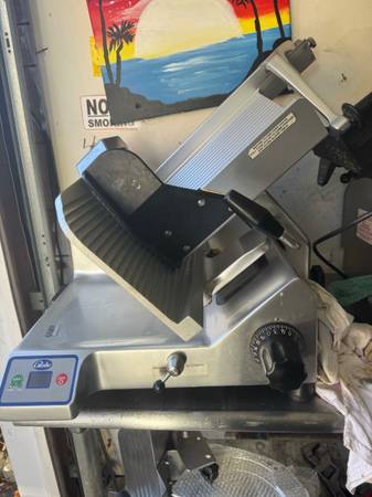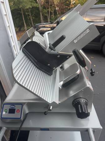 Globe slicer model S13 newest model automatic with serrated blade for frozen meats and bread located in Coram long island
