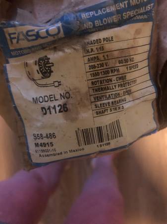 The Fasco D1126 is a Refrigeration Fan Motor. Some of the specifications of the Fasco D1126 Refrigeration Fan Motor This is brand new never used. Look at the pictures for more information