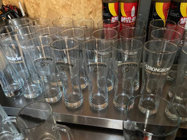 Strongbow Pint glasses also available; 6 Budweiser glasses 3 Bitburger mugs 0.4L 8 Bitburger German Pokal beer 0.4L 6 Old Speckled Hen Pint glass CALL OR TEXT ;3 4 7 8 7 6 9 6 7 0 beer glass beer...