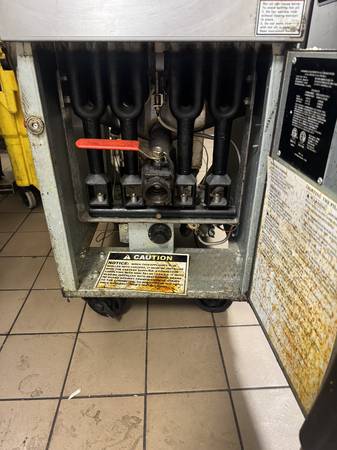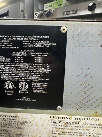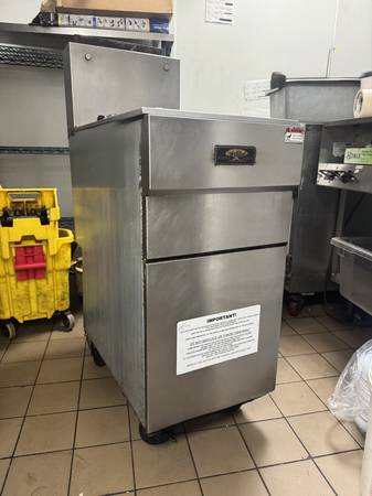 Great condition, used commercial deep fryer. On casters (wheels)! 120,000 BTU Height 45.8 (H) Width 15.5 (W) Depth 30.2 (D) Fryer, gas, floor model, full pot, 50 lb. fat capacity, (4) tubes, cast...