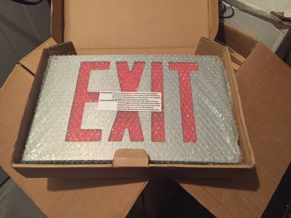 Brand new in box never used. It’s an 8” DIE CAST 1face LED EXIT SIGN battery back up and tamper proof. Willing to trade! NEGOTIABLE!!
