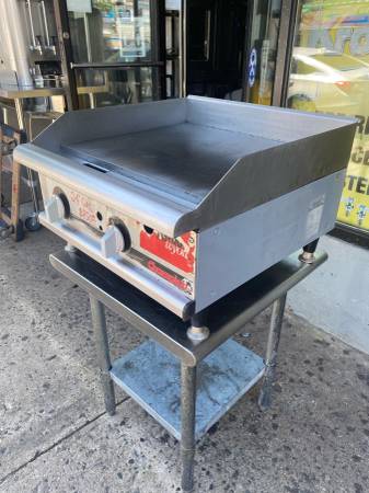 Professionally serviced APW 24 inch gas griddle. This item sells with a parts and labor warranty. Propane conversion available. Hablo Espanol Restaurant Equipment - Commercial Kitchen - Deli -...