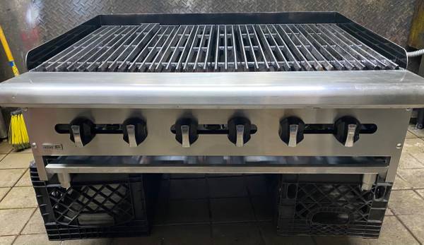Professionally serviced Asber 36 inch radiant char-broiler. This item sells with a parts and labor warranty. Propane conversion available. Model: AERB-36 Hablo Espanol Restaurant Equipment -...