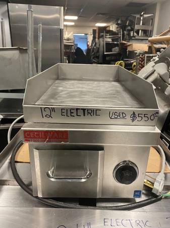 Professionally serviced Cecilware 12 inch electric flat griddle. This item sells with a parts and labor warranty. Hablo Espanol Restaurant Equipment - Commercial Kitchen - Deli - Grocery - Bakery -...