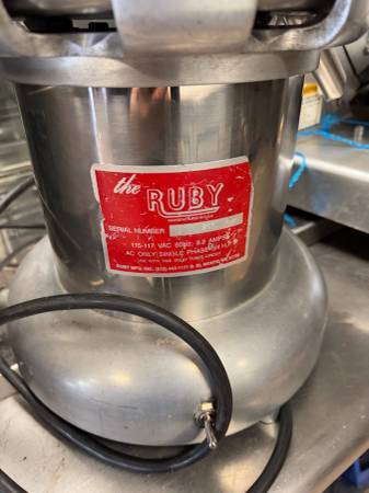 Ruby commercial juicer. This item sells with a parts and labor warranty. Hablo Espanol Restaurant Equipment - Commercial Kitchen - Deli - Grocery - Bakery - Bar - Juicer - Ruby - Jugos