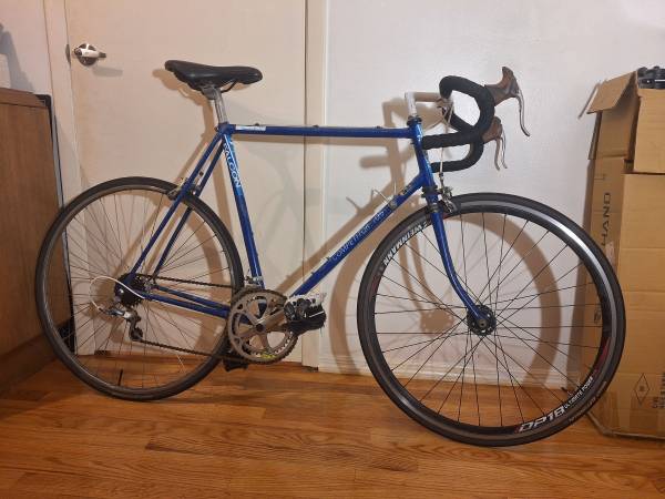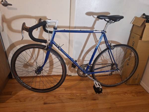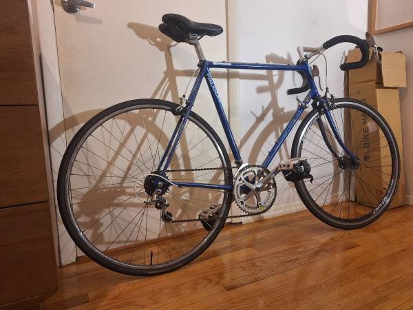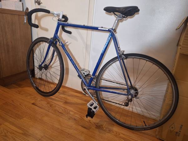 Falcon Competitor 105 road bike. Steel frame (58cm). Shimano 105 groupset. 12 speeds. Continental Gatorskin tires, pedal straps, newish Selle Royal saddle. Brand new handlebar tape. Made in England....