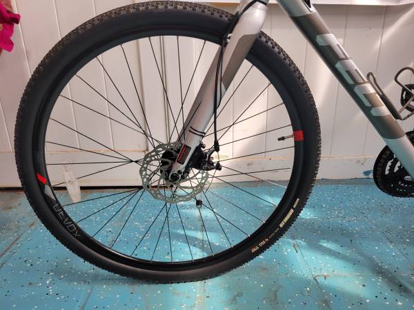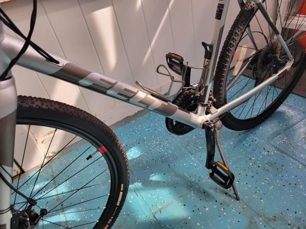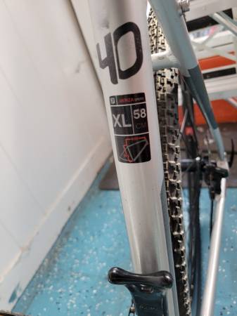 Bike has XL 23 inch/58 cm aluminium frame, 700C wheels with 700x40 maxis tires for trail or road. New owner may add skinny tires. Bike also has mechanical disc brakes, Shimano Acera group set, kick stand..Bike is ready to ride anywhere.