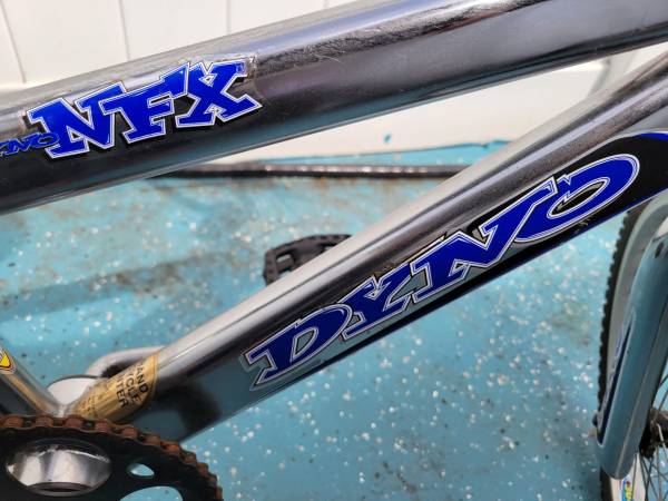 Gt Dyno NFX BMX. All original components. 12 inch chrome frame. Ready to race or ride. No repair is needed.
