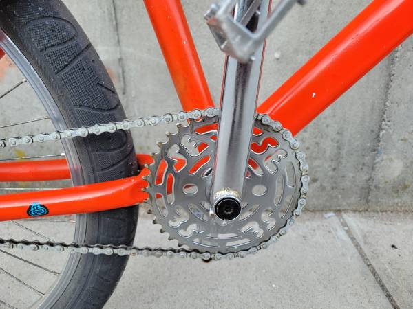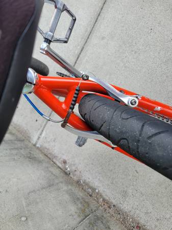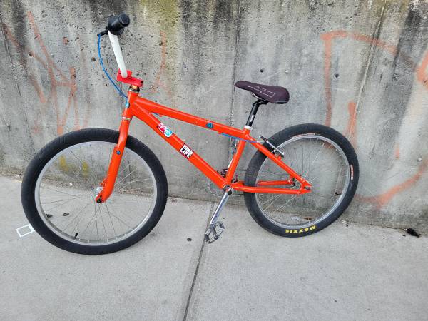 SE So Cal Flyer with 13 inch/ 33 cm aluminium frame, 24 inch wheels with maxis hookworm tires, loud sprocket. Rides and brakes excellent. Poor paint job hence low price.