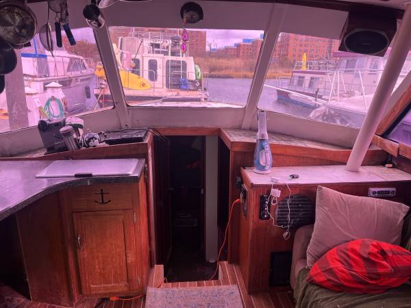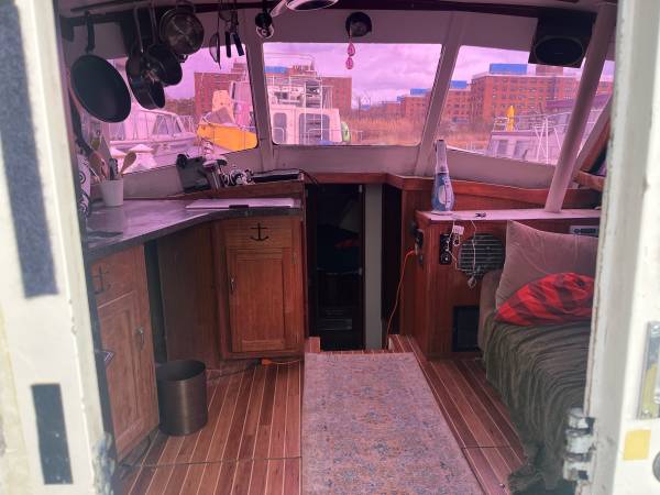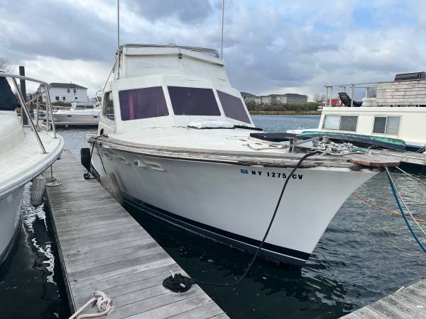 1971 Egg Harbor currently in the water at a Marina in Queens for sale. Was used as a live aboard for a many years until recently and still has some miles in it for the right person. Needs some care and repair. Engine hasn’t run in a few years. Willing to wiggle with price.