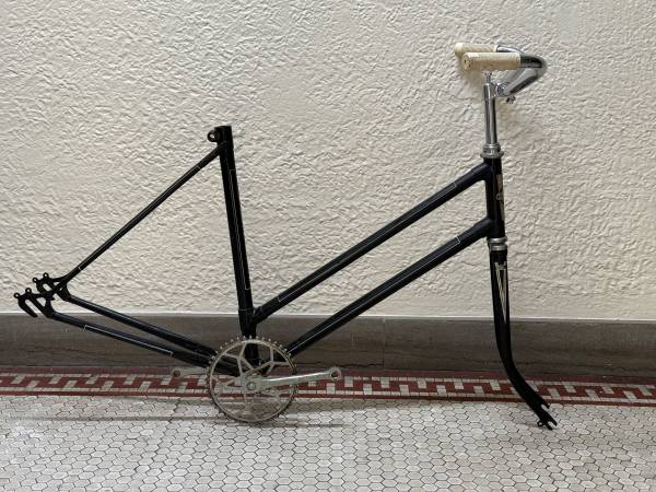 Japanese bike frame and fork for sale. 20”/51cm size. Nice little project that never materialized. Sold as is. Detailing and paint in great condition, no rust. Would make a good base for a custom build.
