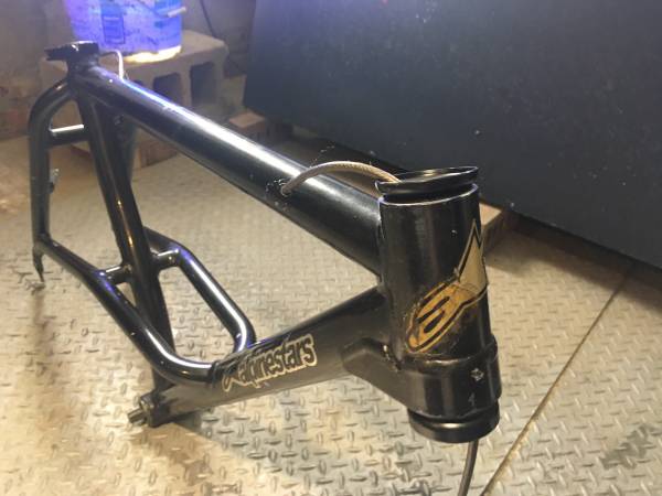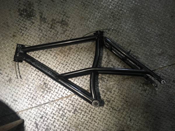 Super rare frame , cool chocolate metal flake, no frame damage just paint wear. Straight rear , Aluminum