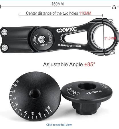 CXWXC Adjustable MTB Stem 31.8mm x 110mm Bike Stem Riser Exact model is shown here https://www.amazon.com/dp/B09C4JTX2Z?ref_=ppx_hzsearch_conn_dt_b_fed_asin_title_6&th=1 Scratch on top (see...