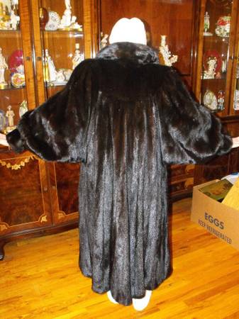 WOW Black Ranch Fur Mink Swing Style with Dolman Sleeves Floor Length Coat