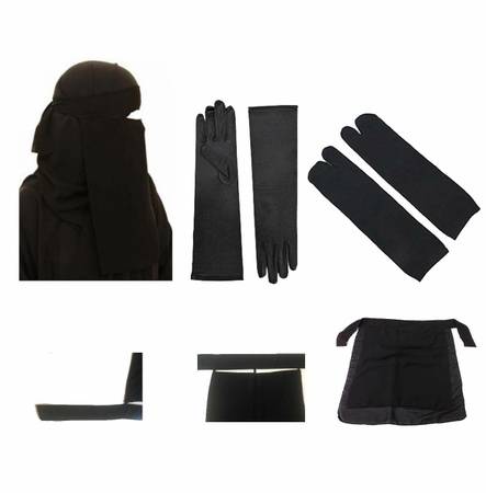 A few pieces of clothing for Muslim woman, slightly used for a short film. A Navy color Borqua, Chador (146 inches from head to heel), a 3 Niqabs, one if Afghani style and one pair of gloves and one...