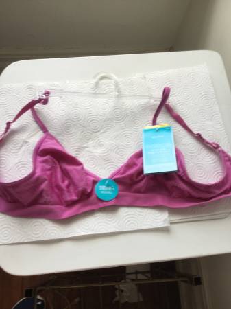 Four of these "bralettes" available -- each a different color. New, never worn, with tags on. Very comfy and lightweight. No underwires. No padding. Adjustable hook and eye closures in back. Pretty, dainty, delicate patterns