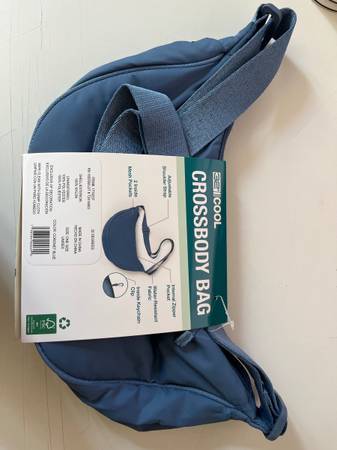 Brand new cross body bag for man or women in aqua marine blue with an adjustable strap, 2 inside mesh pockets, internal zipper pocket, water-resistent fabric and inside keychair clip.