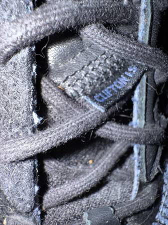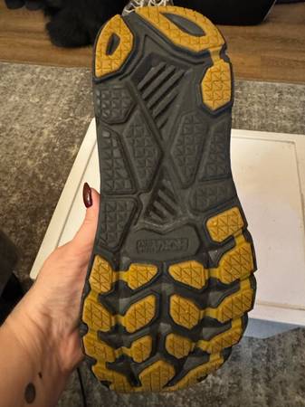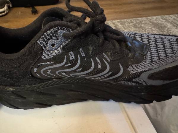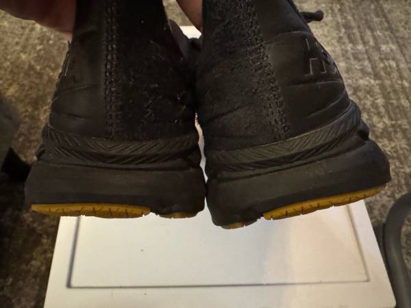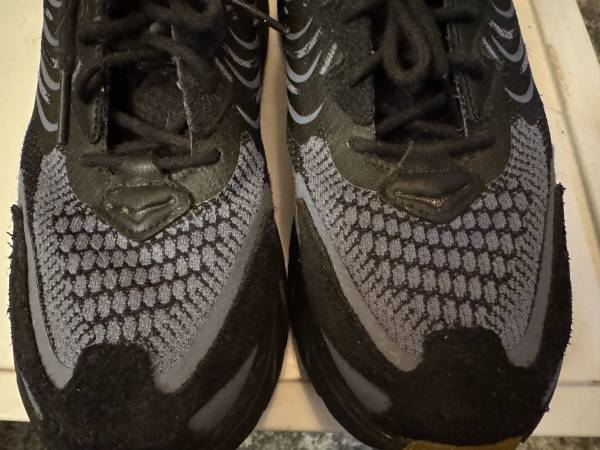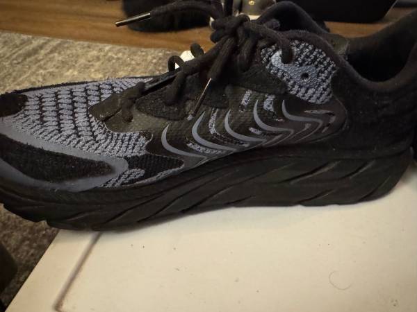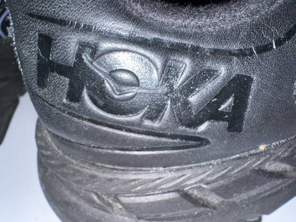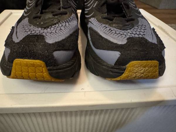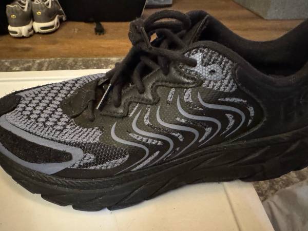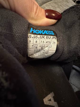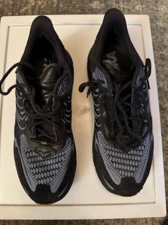 Worn one time for few hours. Women's size 9, black and periwinkle suede and leather Hoka sneakers. In excellent condition. Very comfortable and lightweight.