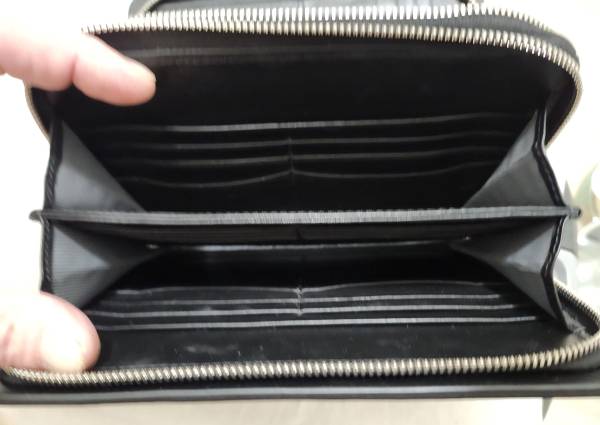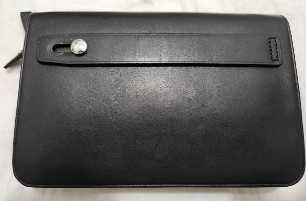Authentic TUMI brand, sturdy thick black leather construction, 2 zippered compartments-1 for credit cards, business cards, ID cards, and the other for cash and more business/credit cards.