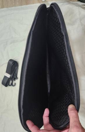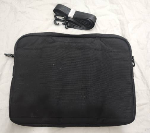 Brand new, never used TUMI Black ballistic nylon laptop sleeve/shoulder bag. Outside dimensions; 16 inches wide by 12 inches tall for full size laptops.