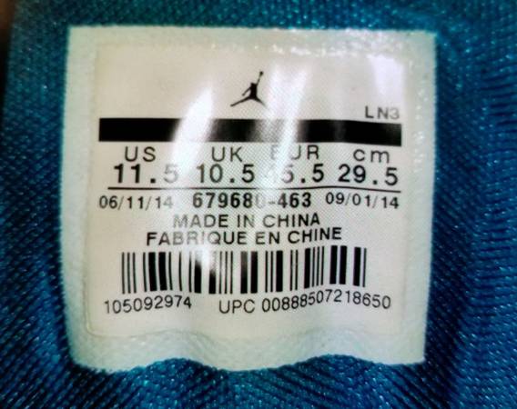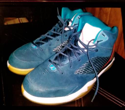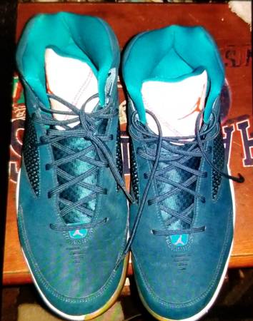 Blueish-green suede 11-1/2 jordans clean insole and like new out-sole; overall good condition. Worn 2 to 3 times on brief occassions. Must see