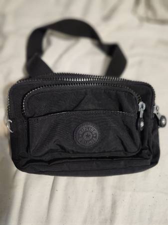 1- black nylon fanny pack. 7 inches by 4 1/2 inches.