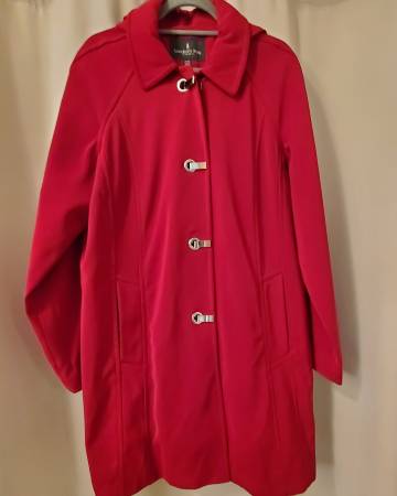 London Fog Trench Coat with Hood and Silver Clasps Size XL. Great condition. Price $35 Pick up only.