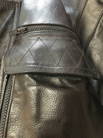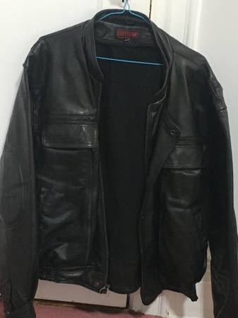 Mens cowhide brand xl black leather biker jacket with many deep pockets $115.00 call or text