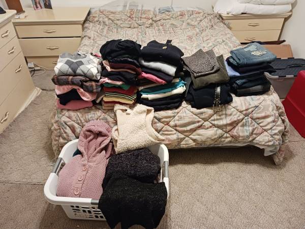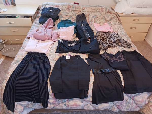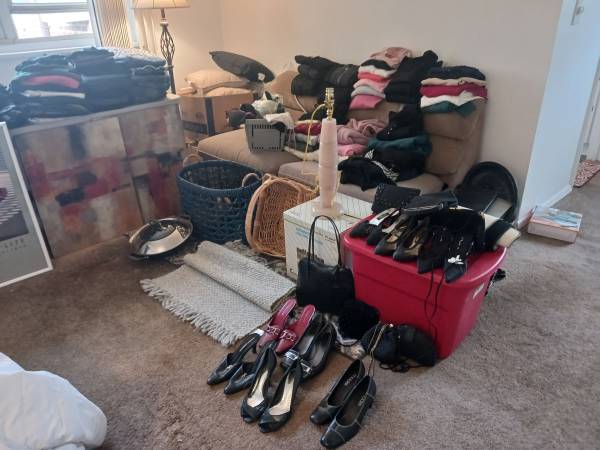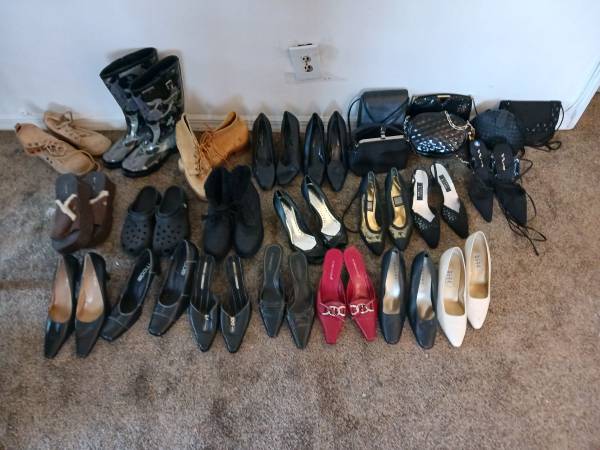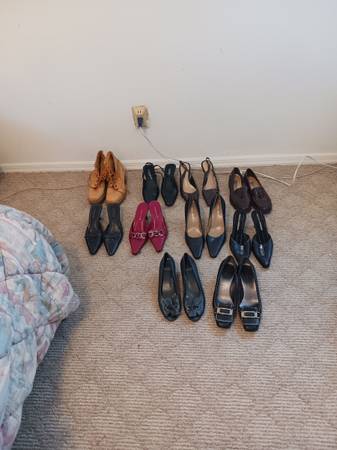 DESINGER SHOES 81/2 -9 $ 10.00- 25.00 FRYE BOOTS WORN ONCE. $ 45.00 DESINGER COATS 100% WOOL ,DOWN FUR COAT WITH MATCHING HAT PLUS BLAZERS $ 5.00- 65.00 SIZE 6 - 14. DESINGER LUGGAGE! CALVIN KLEIN $ 10.00- 50.00 ROLLRES INCLUDED. CLOTHING SIZE SM AND MEDIUM JEANS, CORDUROY SLACKS, REGULAR SLACKS SHIRTS ALL TYPES, SWEATERS BOTTOM DOWN PULL OVER, ZIPPER, LIGHTWEIGHT AND HEAVY,! TURTLE NECK S BAGS OF TIGHTS AND BELTS !!! SUMMER CLOTHES SHORT ,SLACKS, TSHIRTS, DRESSY TOPS , ALL IN VERY GOOD CONDITION $ 2- 5.00 OR BUNDLE AND SELL