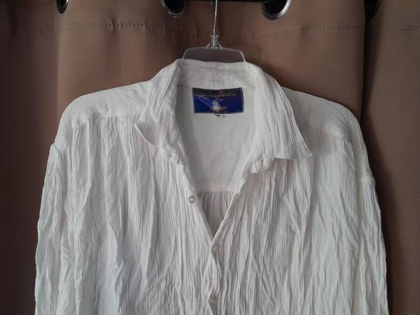 Crinkle Fabric made in Indonesia 100% rayon shirt (size M) fits more like a large (Worn once at best as a Halloween pirate shirt) Pick up (Someone is always home but best if I am here) or I can drop...