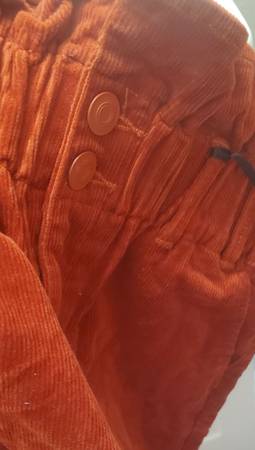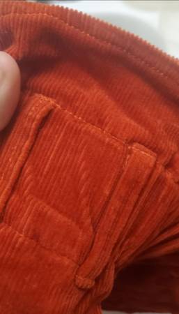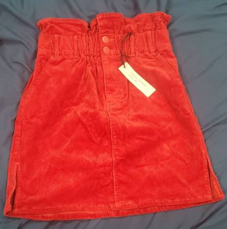 I posted the other pictures to capture the actual color. I don't know why the skirt was looking way brighter than it is. The length is 19 inches. There is two front buttons and a zipper closure. The waist is cinched and there's 8 belt loops on the waist. There's two front side pockets that's usable and two fake back pockets. The skirt have a 4 inch slit on both sides.
