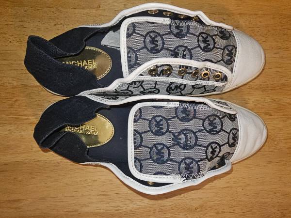Michael Kors Women's Libby Slide Canvas Navy/White Sneakers Size 9.5 I have the laces with MK Gold charm. Lightly Used NO PETS, SMOKE! 48th street/50th Avenue Sunnyside, Queens 2 1/2 blocks from...