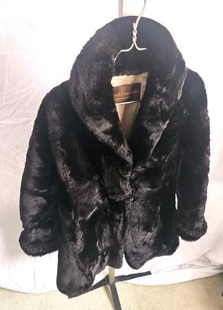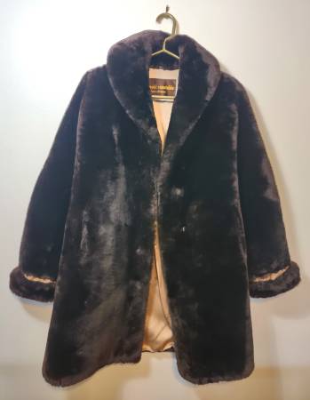 This is a vintage faux fur coat from the 1950s by Arnold Constable Fifth Avenue NY. The coat features a brown color with a regular fit in size M for women. It is designed as a winter coat with a faux fur outer shell and lining material. The brand's association with Fifth Avenue NY suggests a high-quality and stylish piece that would make a fashionable addition to any winter wardrobe.