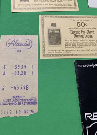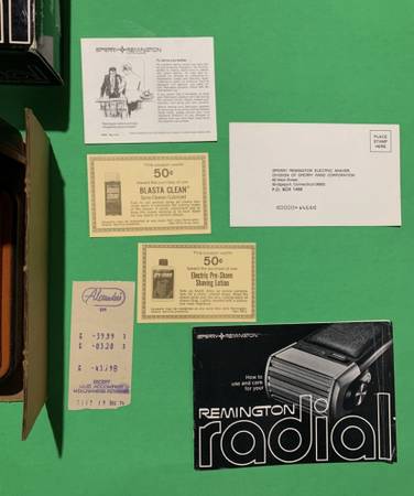 AS YOU CAN SEE FROM THE ORIGINAL RECEIPT FEEL FREE TO MAKE AN OFFER Vintage Remington Radial electric shaver. World-wide rechargeable. Contour design shaver head. Includes original box and...