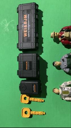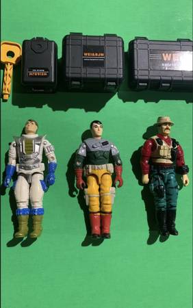 Three 1980 Go Joe vintage action figures. Including: Three Wei&BJM hard plastic cases. Two yellow plastic keys. Collectible items. Light wear and tear need magnifying glass Colors rich Feel free...