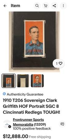 The Sovereign back represents about 4% of all the T206 cards made, and this one, the Sovereign 350 back, represents about only 2%. The portrait card is always more desirable, it is perfectly centered, and the colors and eye appeal on this card is impeccable. These cards always sell fast. Get it now before it's gone. First come, first serve.
