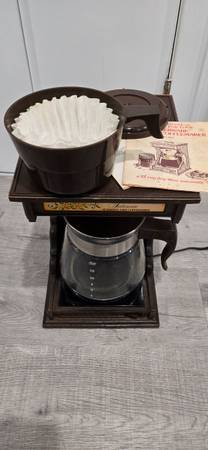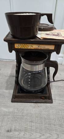 Amazing item of history! Great for those opening a charming coffee shop and in need of some retro decor. This great 1980s electrical coffeemaker is in working condition and makes 10 cups of coffee....