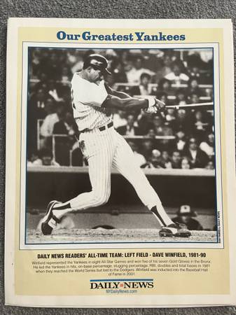 Daily News Our Greatest Yankees includes 1st Base – Lou Gehrig/2nd Base – Willie Randolph, SS – Derek Jeter/3rd Base – Alex Rodriguez, LF – Dave Winfield/ CF – Mickey Mantle, RF – Babe Ruth/C – Yogi...