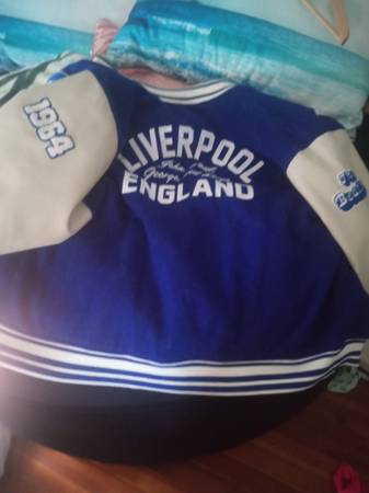 Varsity jacket Blue wool with white 'Leather' sleeves , inside pockets