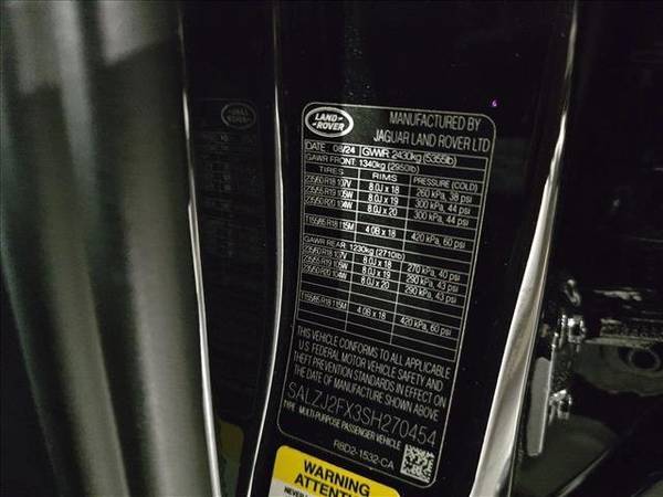 * Technology Package * Cold Climate Package * Santorini Black Metallic * Black Exterior Pack * Panoramic Roof * Premium Interior Protection & Storage Pack * Leather Seats * Navigation System * Wheels: 18" Gloss Black (Style 5074) * Wheel Protection Pack * Emergency Pack * Lane Keeping Assist * Keyless Start * Rear Spoiler * Heads-Up Display * Ebony; Grained Leather Seat TrimThis vehicle includes a Money-Back Guarantee* and passed our precise inspection process. Best of all the price you see is the price you pay. No haggling. No back and forth. No pressure. And this price is so good it is guaranteed. *Money-Back Guarantee is valid for 5 days or 250 miles, whichever comes first. Subject to certain terms and conditions. See store for details. Some restrictions apply.This 2025 Land Rover Range Rover Evoque Core S is offered to you for sale by Land Rover New Rochelle. This Land Rover includes: EMERGENCY PACK EBONY, GRAINED LEATHER SEAT TRIM Leather Seats BLACK EXTERIOR PACK TECHNOLOGY PACKAGE Back-Up Camera Aerial View Display System Heads-Up Display PREMIUM INTERIOR PROTECTION Floor Mats WHEELS: 18 GLOSS BLACK (STYLE 5074) Chrome Wheels Aluminum Wheels Steel Wheels COLD CLIMATE PACKAGE Heated Rear Seat(s) SANTORINI BLACK METALLIC WHEEL PROTECTION PACK Wheel Locks *Note - For third party subscriptions or services, please contact the dealer for more information.* The Land Rover Range Rover Evoque Core S's pristine good looks were combined with the Land Rover high standard of excellence in order to make this a unique find.