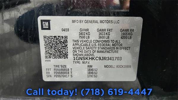 2018 Chevrolet Suburban LT 12-Volt Auxiliary Power Outlet (5), 1st & 2nd Row Color-Keyed Carpeted Floor Mats, 2nd Row 60/40 Split-Folding Manual Bench, 3rd Row Manual 60/40 Split-Folding Fold Flat Bench, 4-Wheel Antilock Disc Brakes, 6-Way Power Front Passenger Seat Adjuster, Auto High-beam Headlights, Auto-Dimming Inside Rear-View Mirror, Automatic temperature control, Black Assist Steps, Bose Premium Audio System Feature, Color-Keyed Carpeting Floor Covering, Driver Inboard & Front Passenger Airbags, Electronic Cruise Control w/Set & Resume Speed, Enhanced Driver Alert Package, Extended-Range Remote Keyless Entry, Exterior Parking Camera Rear, Floor Console w/Storage Area, Forward Collision Alert, Front dual zone A/C, Fully automatic headlights, HD Radio, Intellibeam Headlamps w/Automatic High Beam On/Off, Lane Keep Assist w/Lane Departure Warning, Leather-Wrapped Steering Wheel, License Plate Front Mounting Package, Low Speed Forward Automatic Braking, Memory Settings, OnStar Basic Plan For 5 Years, Power Liftgate, Power-Adjustable Accelerator & Brake Pedals, Preferred Equipment Group 1LT, Premium Smooth Ride Suspension Package, Radio: Chevrolet MyLink AM/FM Stereo w/Navigation, Rear air conditioning, Rear Park Assist w/Audible Warning, Remote Vehicle Start, Roof-Mounted Luggage Rack Side Rails, Safety Alert Seat, Single-Slot CD/MP3 Player, SiriusXM NavTraffic, SiriusXM Satellite Radio, Universal Home Remote.