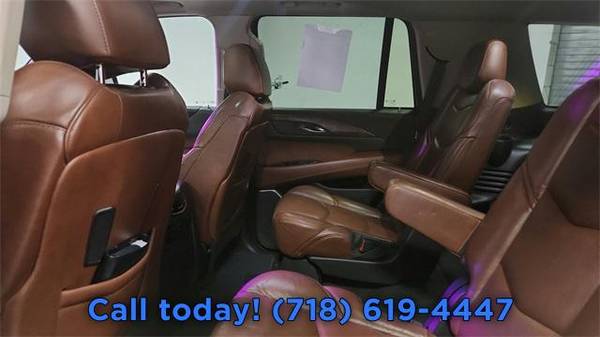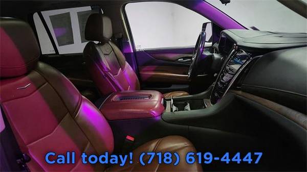 2019 Cadillac Escalade Luxury 4WD, Kona Brown w/Jet Black Accents w/Leather Seat Trim, 1st 2nd & 3rd Row All-Weather Floor Mats (LPO), All-Weather Cargo Mat (LPO), Auto High-beam Headlights, Automatic temperature control, Bose Centerpoint 16 Speaker Surround Sound System, Driver Awareness Package, Exterior Parking Camera Rear, Forward Collision Alert, Front dual zone A/C, Fully automatic headlights, HD Radio, Inclination Sensor, IntelliBeam Automatic High Beam On/Off, Interior Protection Package (LPO), Lane Change Alert w/Side Blind Zone Alert, Lane Keep Assist w/Lane Departure Warning, Low Speed Forward Automatic Braking, Navigation System, Power Configurable Second Row Bucket Seats, Power Liftgate, Power Tilt-Sliding Sunroof w/Express-Open/Close, Preferred Equipment Group 1SB, Radio: AM/FM Cadillac User Experience w/Nav, Rear air conditioning, Rear Camera Mirror, Rear Camera Mirror Washer, Rear Cross Traffic Alert, Rear Seat Entertainment System, Reconfigurable 4-Color Head-Up Display, Safety Alert Seat, Single Slot CD/MP3 Player, SiriusXM NavTraffic, SiriusXM Radio, Steering wheel memory, Steering wheel mounted audio controls, Theft-Deterrent Alarm System, Theft-Deterrent Package, Vehicle Interior Movement Sensor.