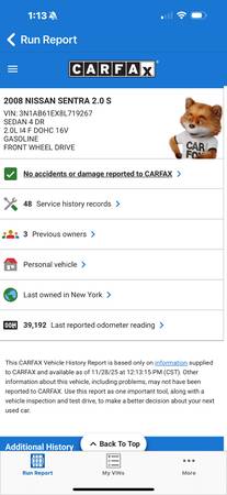 2008 Nissan Sentra, four-door sedan, one on a car, 39,000 original miles, clean title, great Carfax , super clean in and out. Runs and drives well, power windows, door, locks, air conditioning, clean New York, title, phone calls only, slightly negotiable.