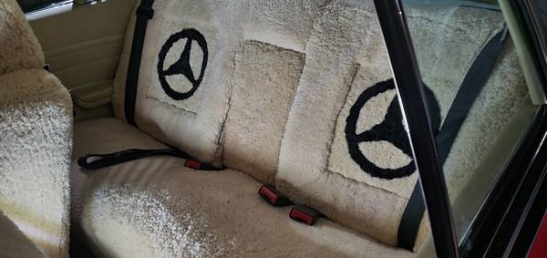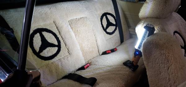 Car also has the upgraded disk brakes front and back with calipers and stainless steel brake lines. In my opinion, after the stainless steel lines were installed, the Mercedes stops a lot better from the old style drum brakes that were on it previously. The Mercedes Benz does in fact have an alarm system, an aftermarket radio with new front, and rear speakers. I also bought two small size speakers (subwoofers) that I was going to install but never did (in the back) to give it that little kick in bass it needs. It also has a brand new battery in the trunk with a brand new box. Seats are in great condition with Mercedes Benz style seat covers with the logo (no rips, tears or cut in the fabric underneath, etc.). Everything on the inside of the car works including Heat and AC. Has the routine oil change done to it as well as the yearly inspection.