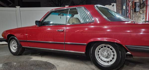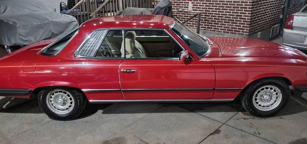 For sale, is this beautiful 1981 Mercedes Benz SLC380 in pristine, excellent condition. As you can tell the car is very well maintained as well as a garage kept throughout most of the year, under a car cover and on a trickle charger.